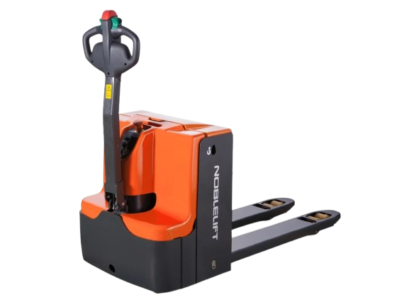 Transpallet elettrico con portata 20-25-30 q.li, batteria agli ioni di litio 24 volt, sterzo elettrico, velocità 12 km/h, adatto ai grandi magazzini, caricabatterie esterno.