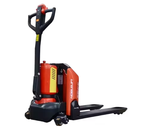 Transpallet elettrico con portata 15 q.li, batteria agli ioni di litio 24 volt, eccellenti prestazioni per le sue ridotte dimensioni, adatto ai medio/piccoli magazzini, caricabatterie esterno.